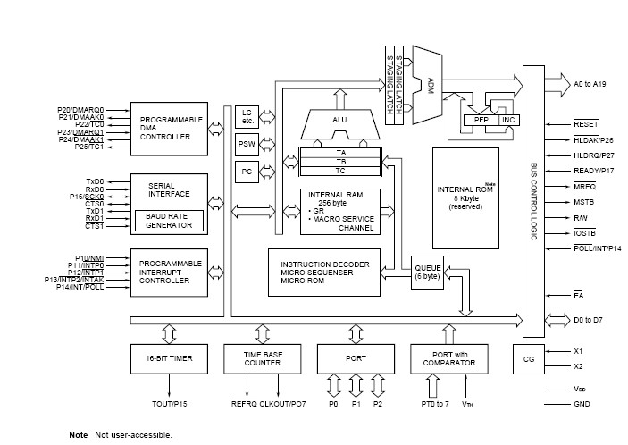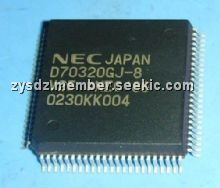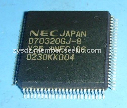 UPD70320GJ-8 features: (1)On-chip RAM : 256 words ?8 bits; (2)Input port (port T) with comparator : 8 bits; (3)I/O lines (input port : 4 bits, input/output port : 20 bits); (4)Serial interface (internal dedicated baud rate generator) : 2 channels Asynchronous mode and I/O interface mode; (5)DRAM and pseudo SRAM refreshing functions; (6)DMA controller : 2 channels; (7)16-bit timer : 2 channels; (8)Time base counter; (9)On-chip clock generator; (10)Programmable wait function; (11)Standby function (STOP/HALT).